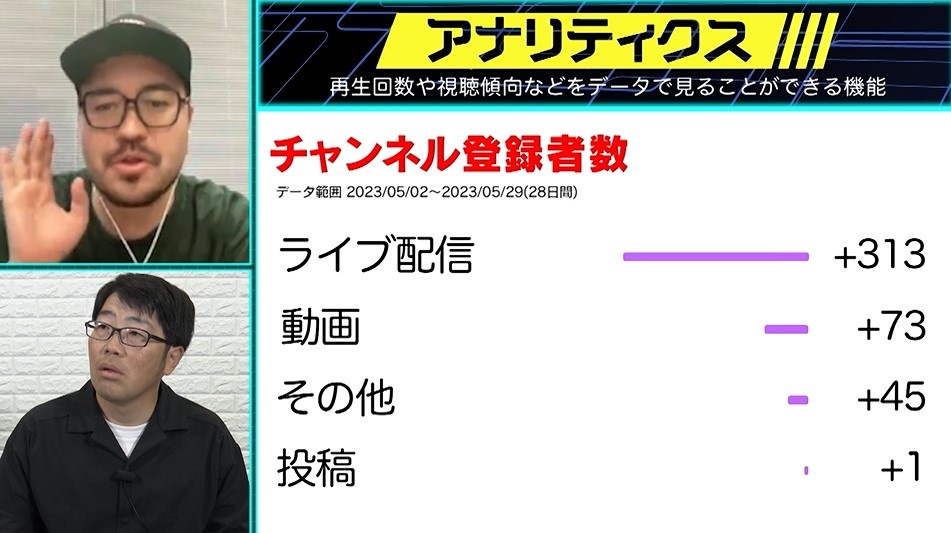 また、生配信中にチャンネルを登録する人が多いことが判明。関口は、起点が利いたトークが要因ではないかと解説します。