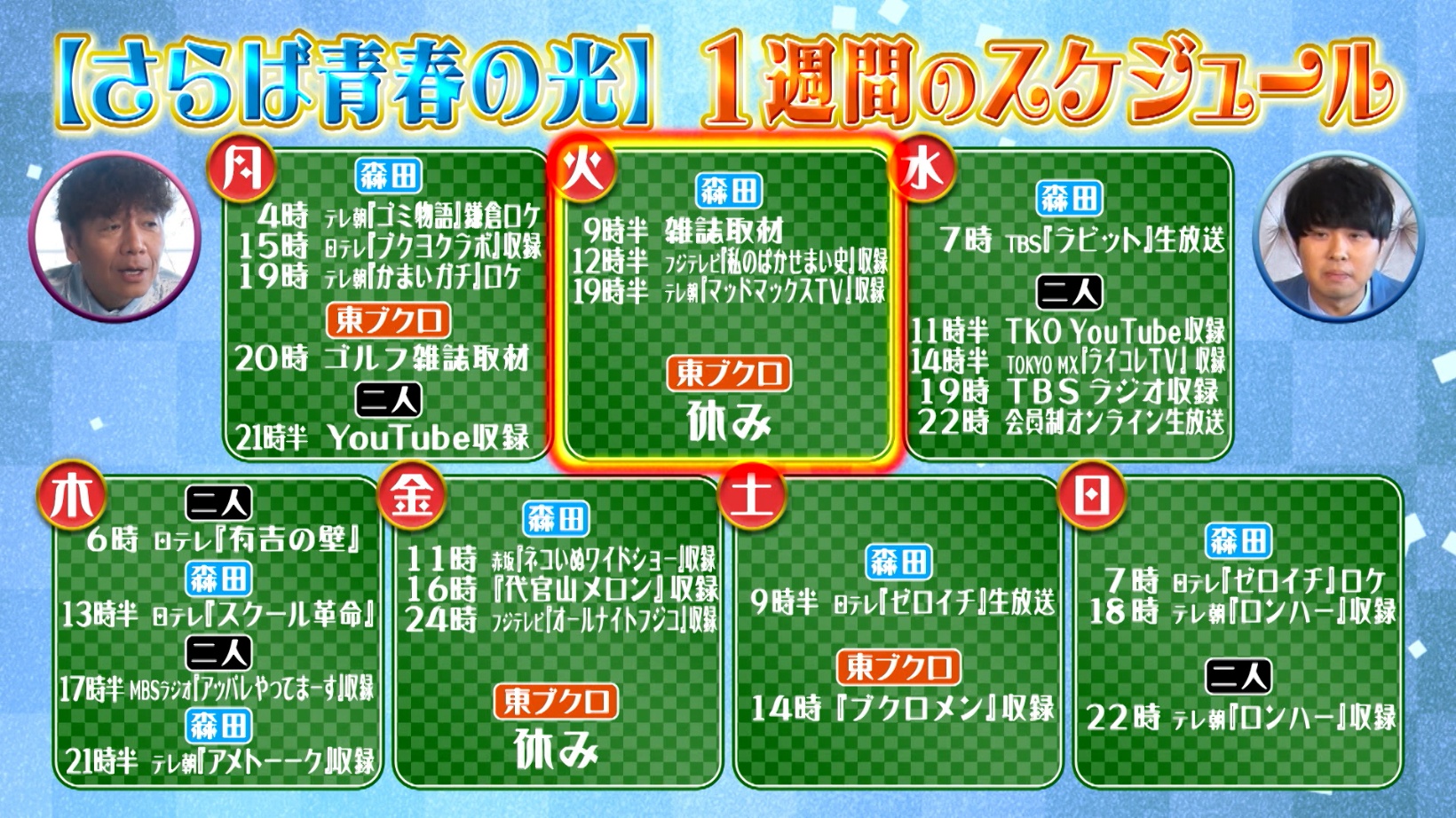 上田「マジな話、東ブクロが一番うらやましいかもな。だって森田と同じ額をもらってるわけだからね。お前(森田)、月に何日くらい休みあるの?」
