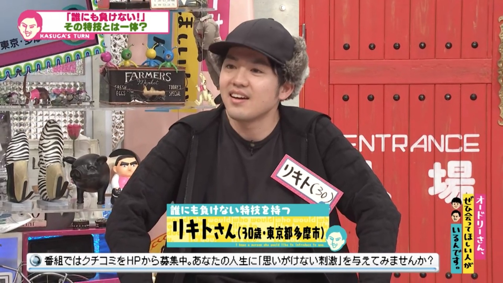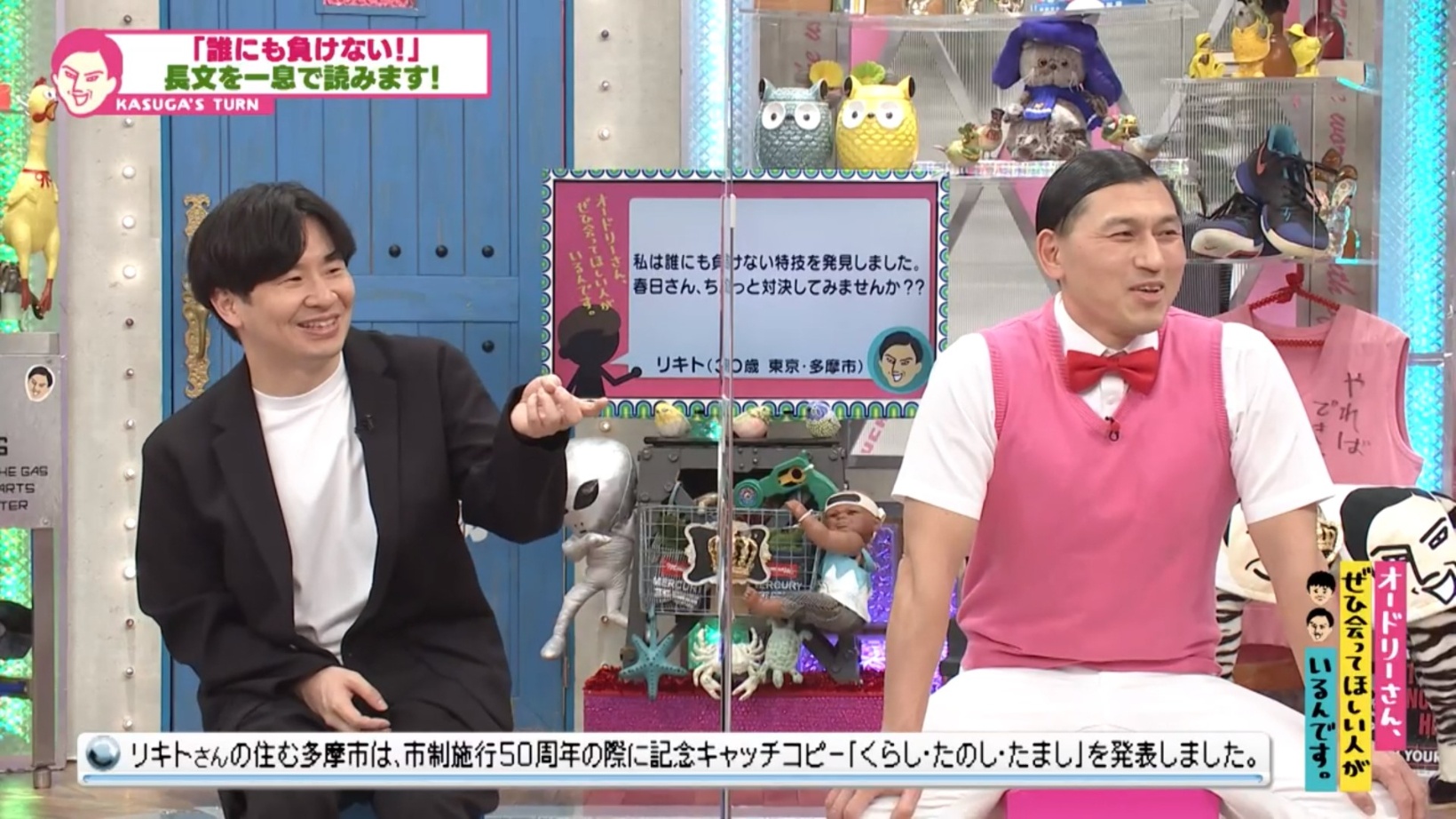 2023年4月24日の放送分では、「誰にも負けない特技がある」という青年、リキトさんが出演。一息で長文を読む特技を披露するべく、オードリー春日と駅名読み上げ対決をする!