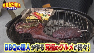 さらに別のグループは、なんと自ら狩猟した鹿の足を丸ごと調理。じっくりと加熱されてロゼ色に輝いた鹿の赤身肉は最高のおいしさ、バーベキューの達人もこれには驚きです。