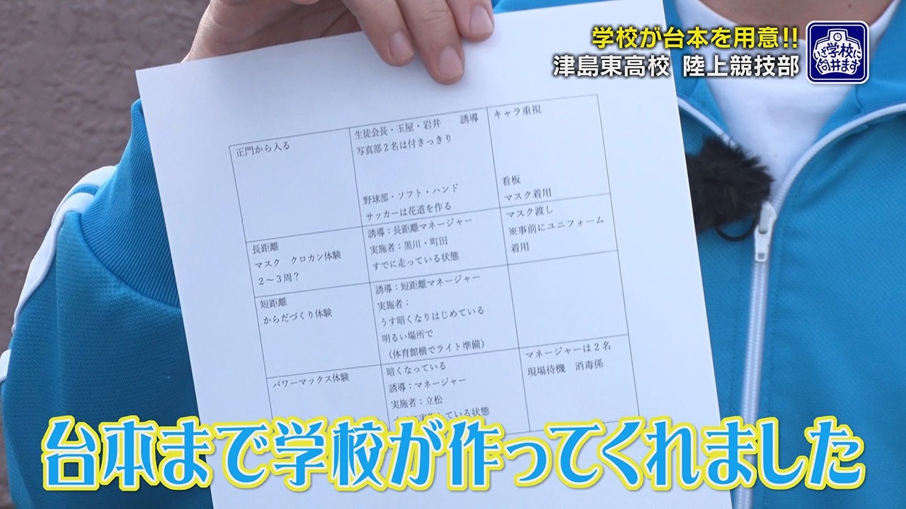 「今回、なんと学校全面協力ということで、台本まで学校が作ってくれました。ありがたいですね~」
