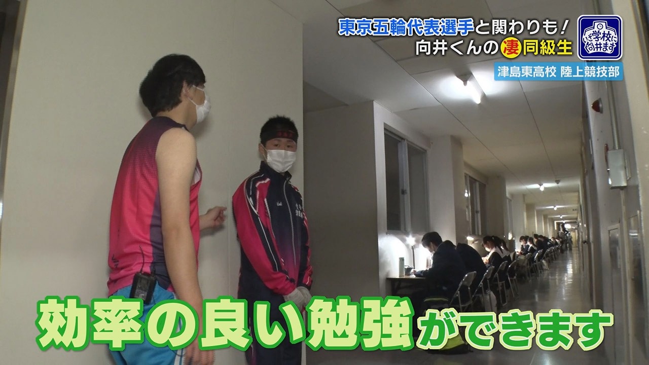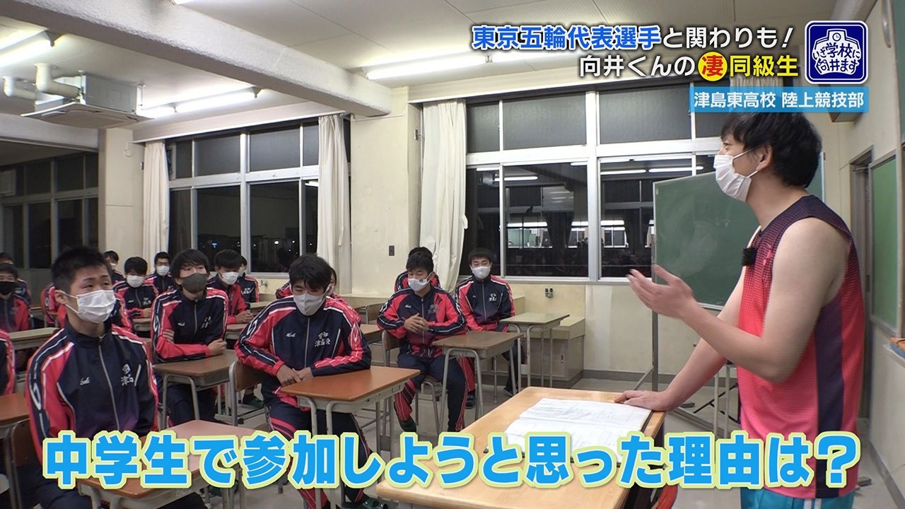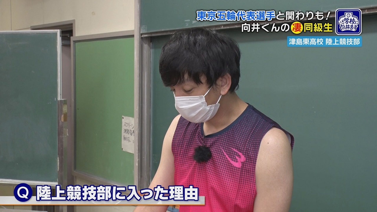取材の前半、わざわざ学校側が作ってくれた“体育会系”な台本通りに進め、陸上競技の素晴らしさを体感することで、体力のギリギリまで追い込まれた向井さん。