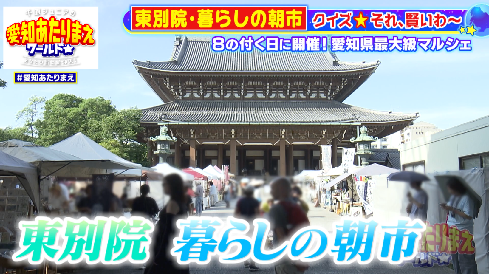地下鉄名城線「東別院駅」を降りてすぐ、境内いっぱいに広がる「東別院・暮らしの朝市」。毎月8のつく日に開かれる、愛知県最大級のマルシェです。約150店が並び、グルメや新鮮野菜、雑貨まで多彩な品が勢ぞろいします。