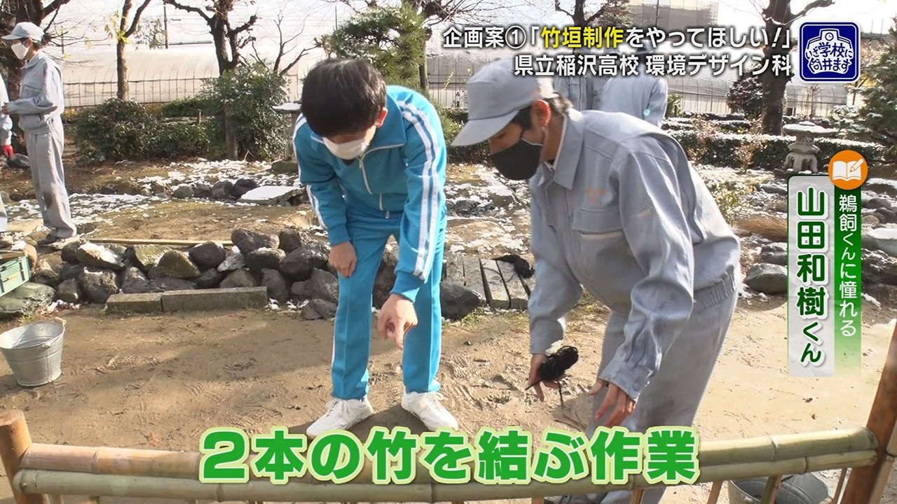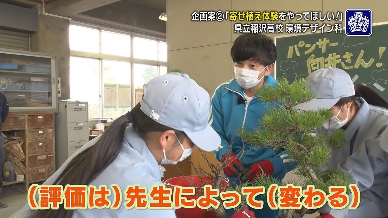 「事前に頂いた、生徒の鵜飼くんからの企画案では、寄せ植え体験をしてほしいとか、四ツ目垣制作をやってほしいとか、『司会みたいなことをやりたいです』とも…。これは(番組コーナー名の)“いざ学校に向井ます”じゃなくて、“鵜飼ます”を作ろうとしてるね(笑)」