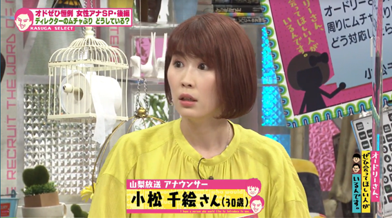 今回は、『オドぜひ』恒例の「女性アナウンサー大集合SP」後半戦!山梨放送の小松千絵アナウンサーが、日頃の不満を包み隠さず打ち明けます。