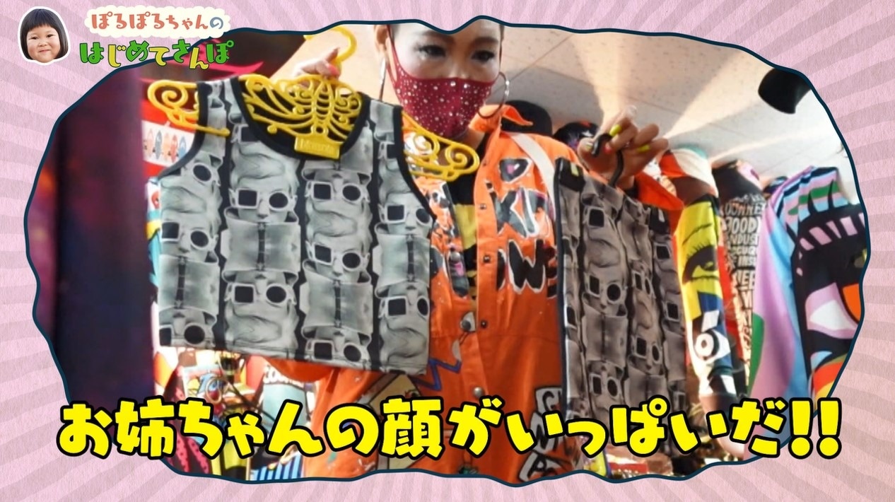 EMIさんが取り出したのはお姉さんの顔がプリントされたセットアップ!