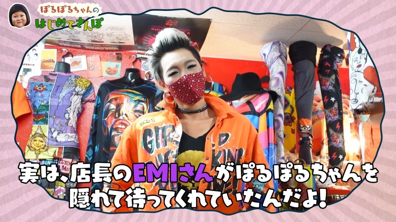 実はぽるぽるちゃんへのサプライズで店長のEMIさんに隠れてもらっていたのですが、お店のキラキラな雰囲気に気圧されたのか、完全に人見知りモードに…