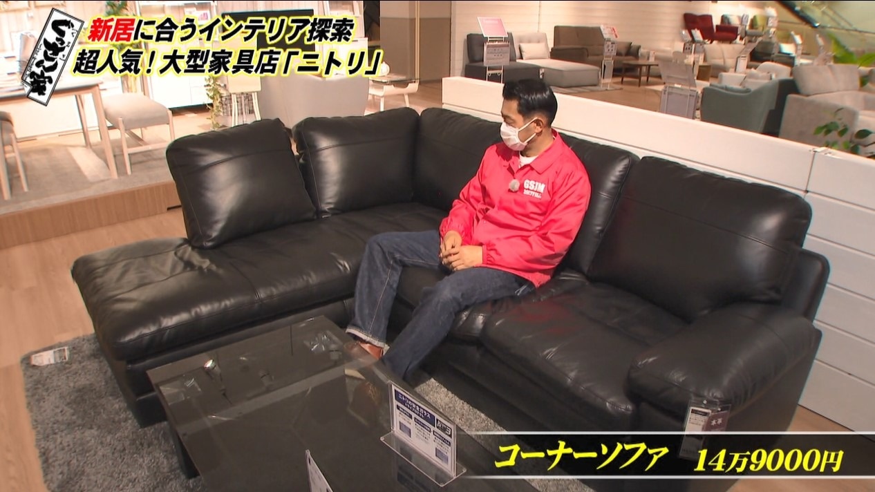 ぐっさん、まずはソファーを物色。