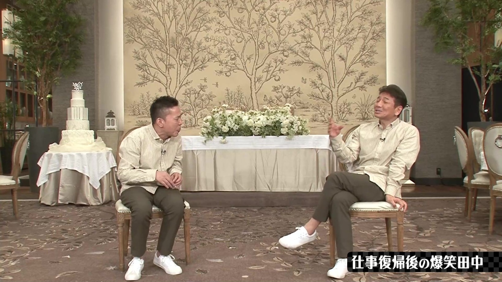 ライブの日は、出番の直前までホテルにこもってネタ合わせをするのだと話す太田さん。なにやらうっぷんが溜まっているのか、しかめっ面で田中さんの復帰ライブでの様子を話し始めます。