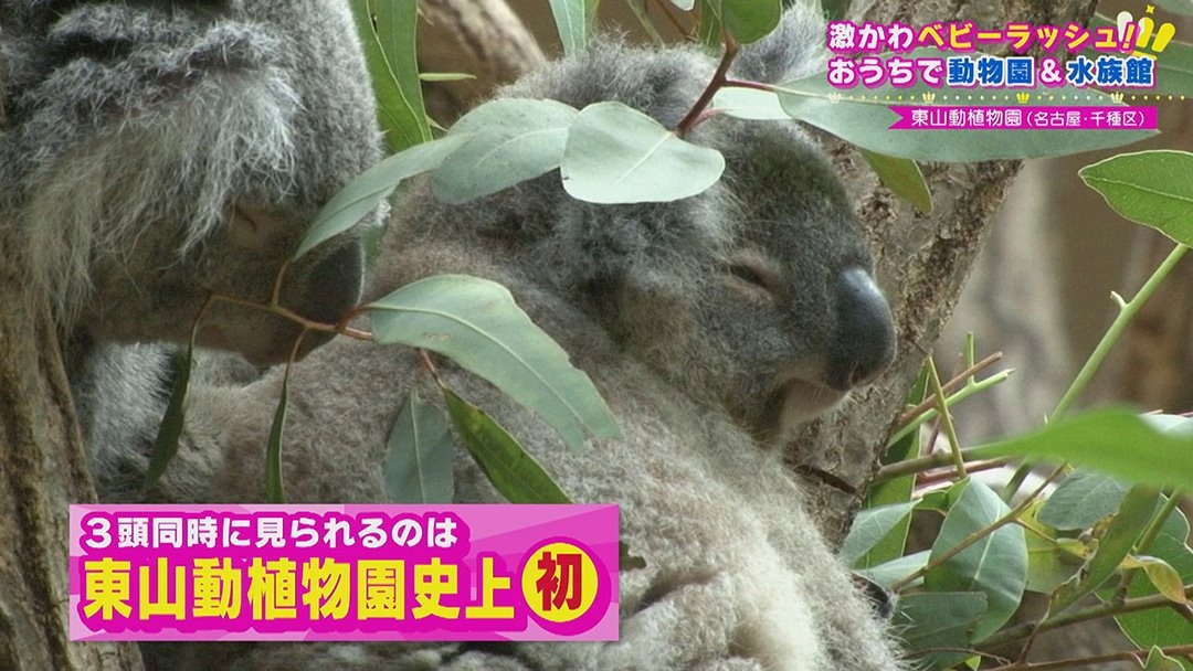 名古屋市千種区の『東山動植物園』では去年、“コアラ"の赤ちゃんが3頭誕生。コアラは生まれてから約半年間はママのおなかの袋の中で過すごしますが、今は外に出ていて、木につかまっていたり、お母さんコアラにだっこやおんぶをしてもらっていたり、愛くるしい姿が見られます。赤ちゃんコアラが3頭同時に見られるのは、東山動植物園史上初めてのことだそうですよ。