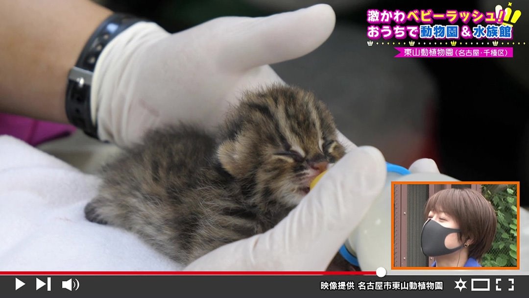 続いては、“ツシマヤマネコ"の赤ちゃん。実は絶滅危惧種に指定されている猫で、環境省の保護増殖事業の取り組みの一環として繁殖に成功。4月30日に2頭が生まれました。全国的にも珍しく、飼育員さんから「帝王切開での出産だった」という貴重なお話も。保護増殖目的のものは基本的には公開していませんが、赤ちゃんの貴重な動画を見せてくださいました。ミルクを飲む姿がかわいくて、癒し効果満点!