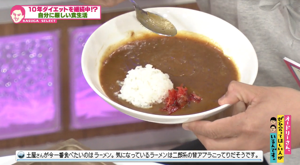 このままではカレーとライスの比率が合わないため、土屋さんは先にカレーだけ食べてライスとの比率を合わせるそうです。これには若林も、「もうちょっと(ライス)食べていいよ?」と声をかけますが、土屋さんは、「制限しないとすぐ太っちゃうんで」と意志は固い様子。