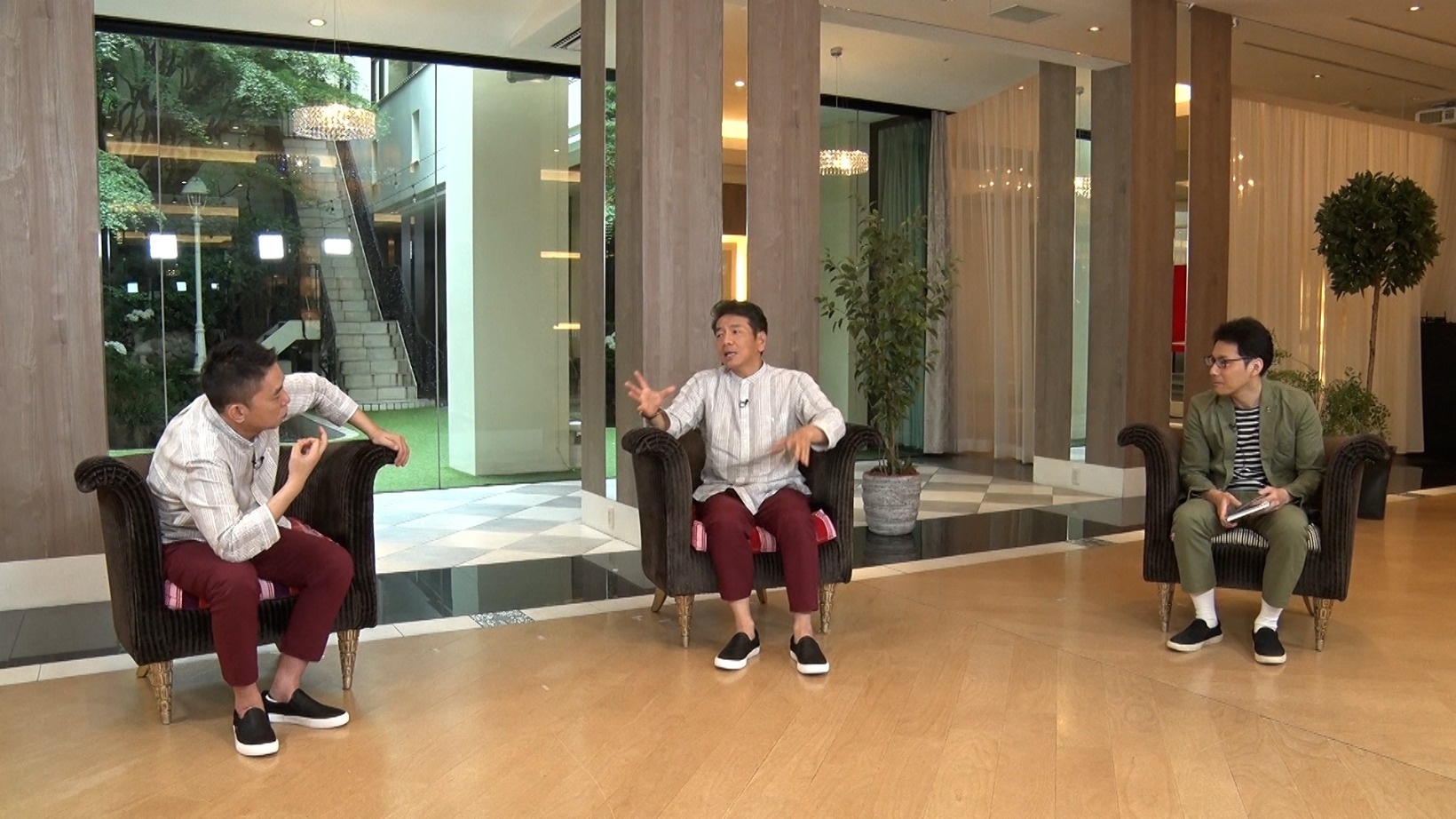 どのポーズにするか真剣に考える3人。「一生だろ…?」と、上田は椅子にもたれかかりながら顔をしかめます。