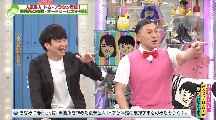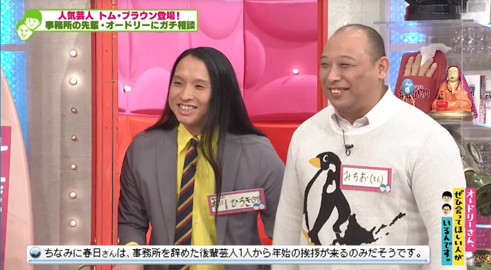 ともにケイダッシュステージという事務所に所属するオードリーとトム・ブラウン。「(『オドぜひ』は)ケイダッシュの若手に、もうちょっと見向きをしてほしい」とみちおさんはオードリーに相談を持ちかけます。