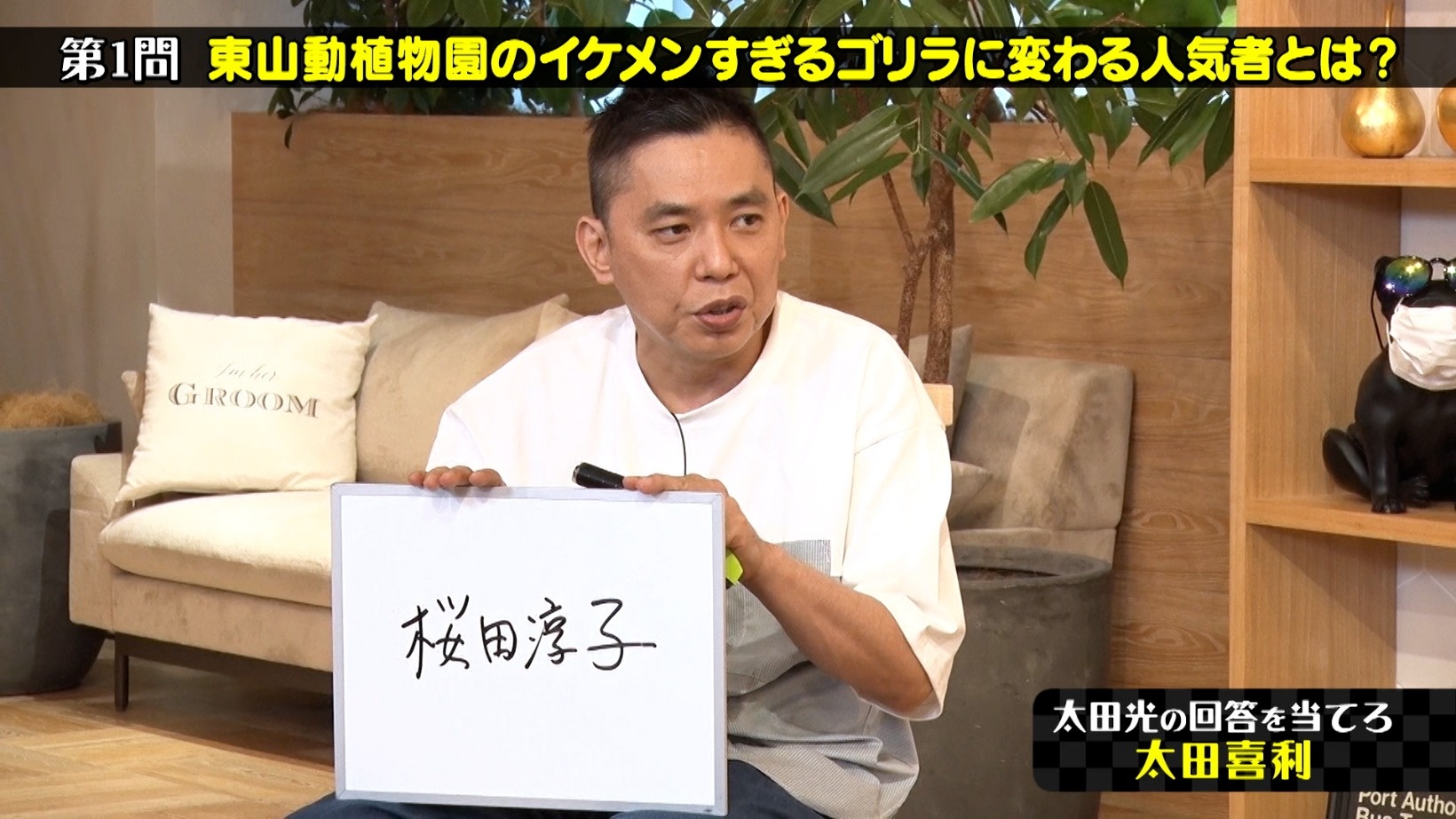 太田の性格を分析しつつ「ゴリラすぎるゴリラ」と回答した古坂大魔王。しかし、太田は「桜田淳子です」と回答。2人の緻密な予測を大きく裏切る結果に。