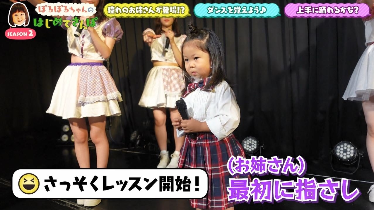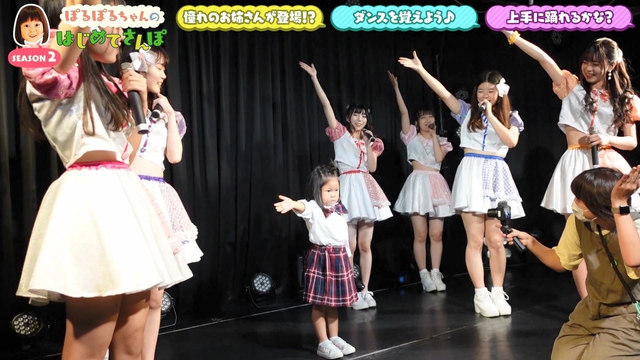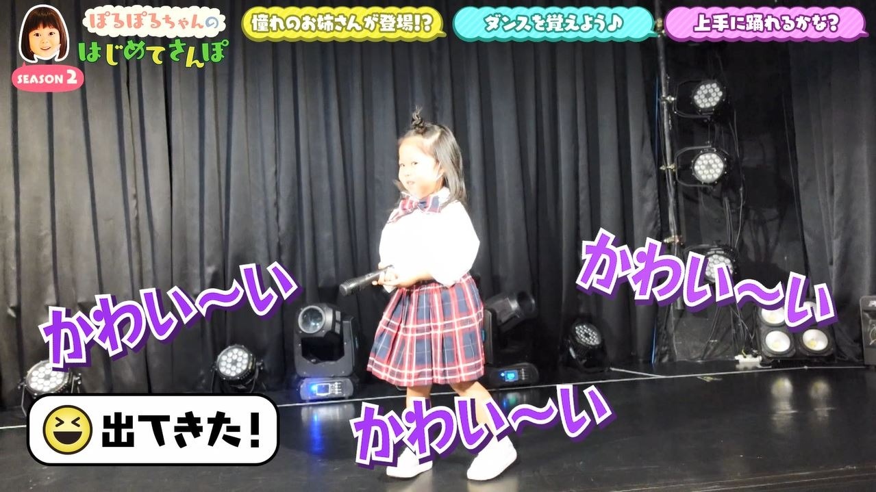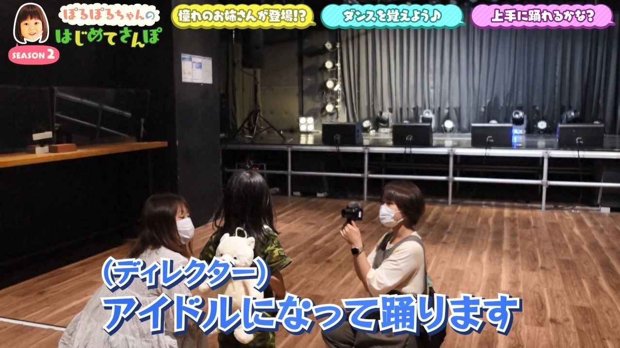 目の前には立派なステージが…スタッフから「ここでアイドルになって踊ります」と言われ、「できな~い」と不安げな様子のぽるぽるちゃん。すると…?