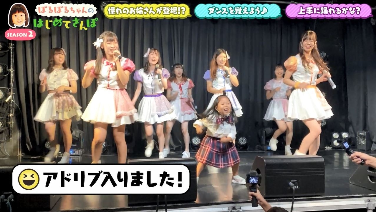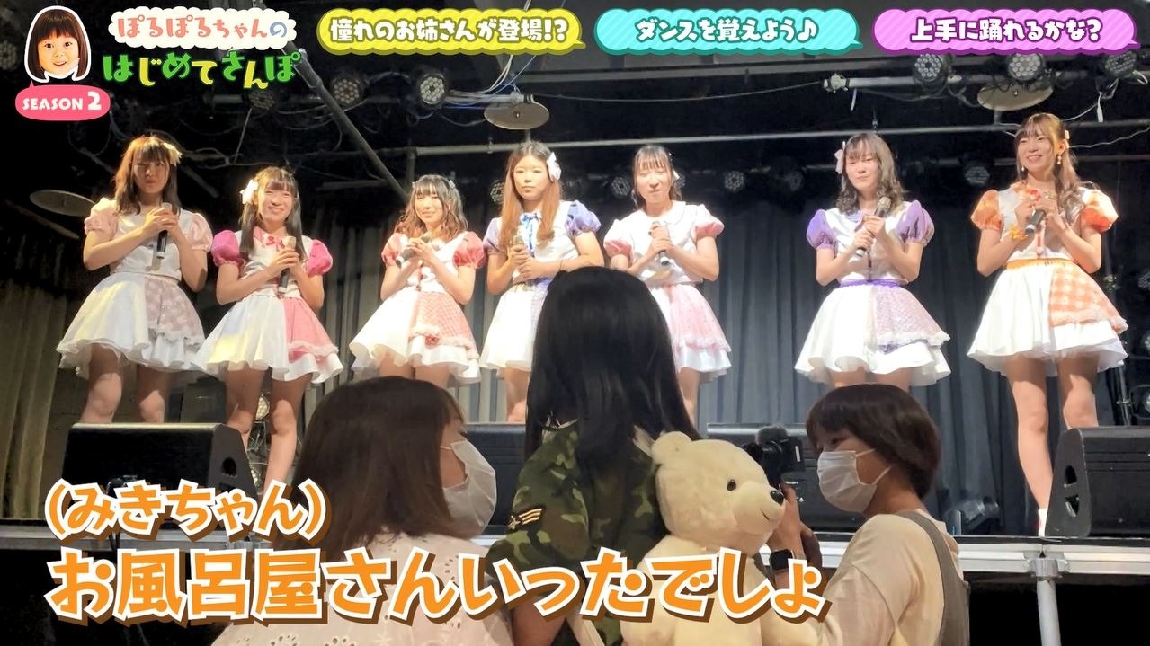 実はぽるぽるちゃん、以前にスーパー銭湯のイベントで『1par=St.』のパフォーマンスを見て以来、大ファンに!憧れのお姉さんたちとの対面に照れ笑いが止まりません。