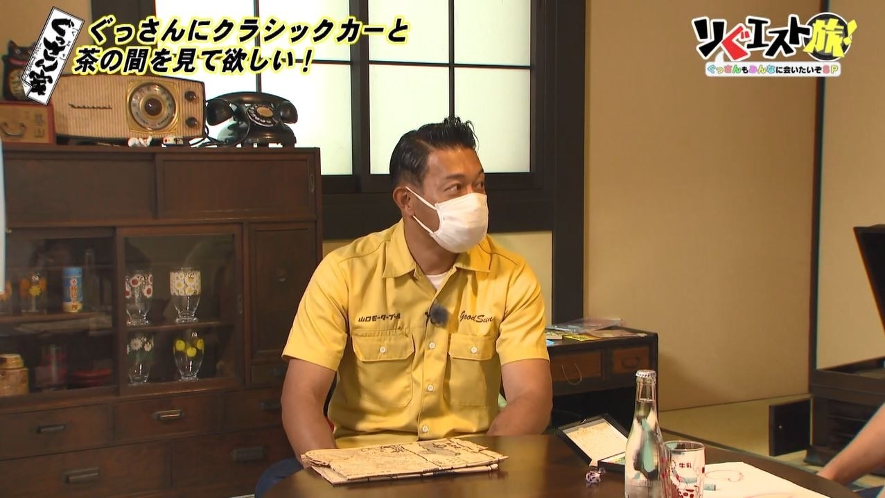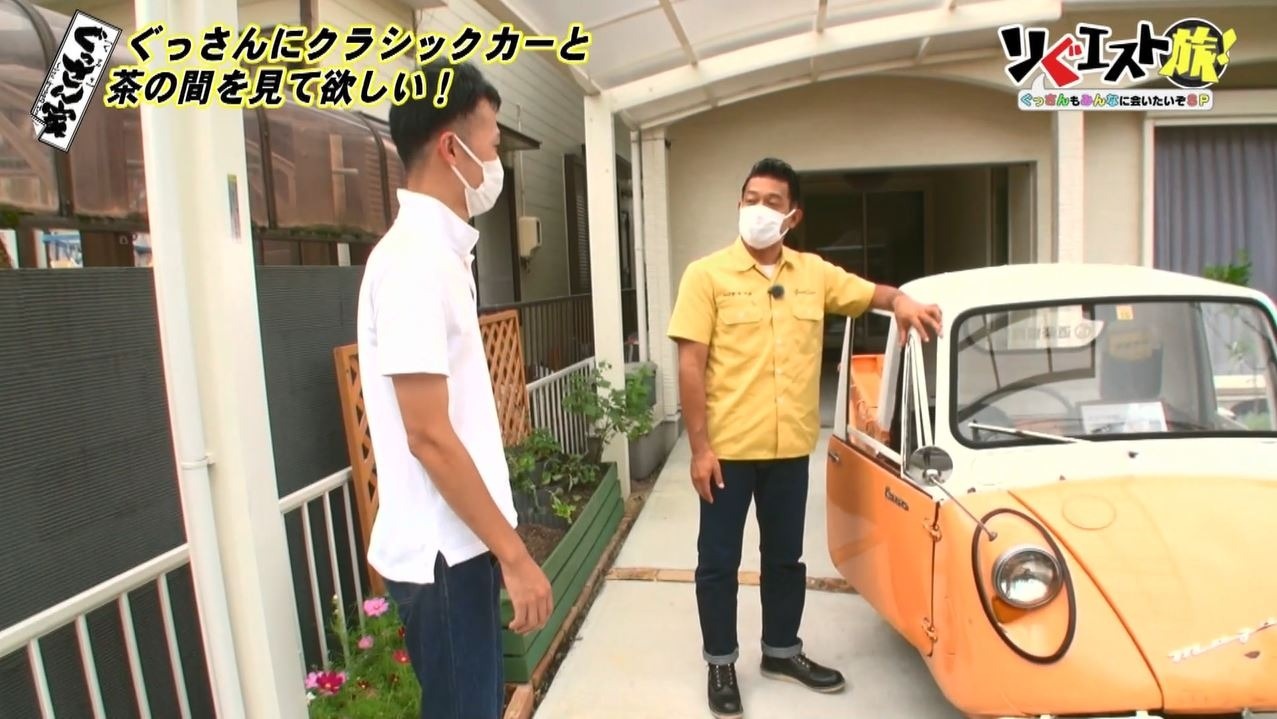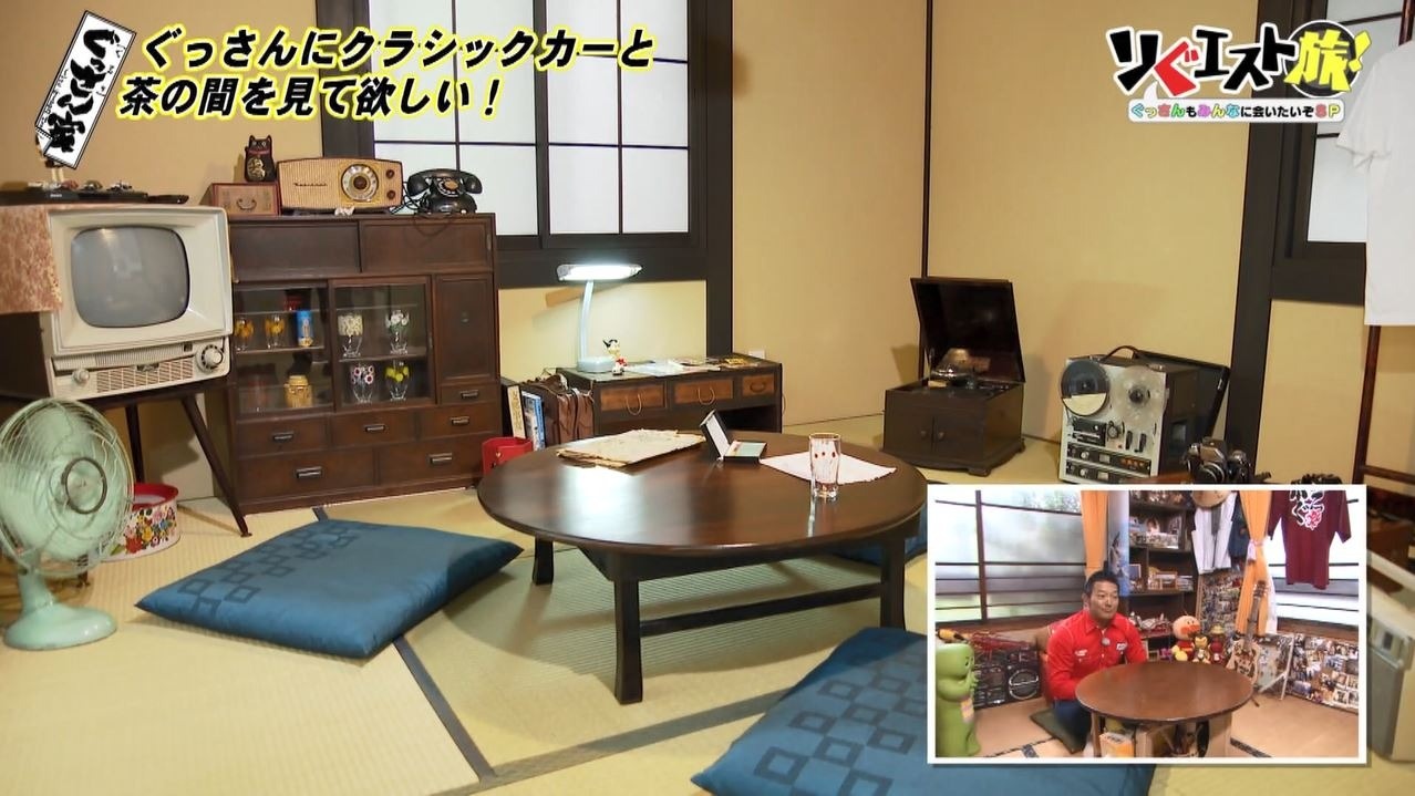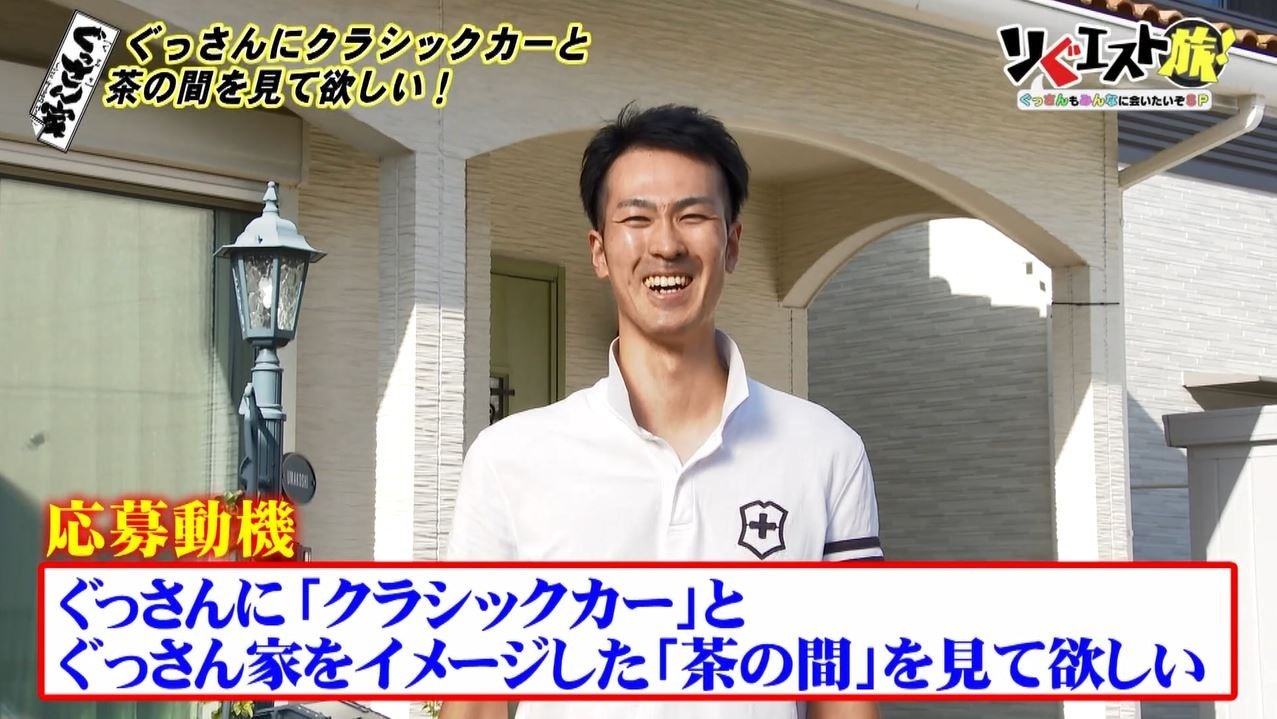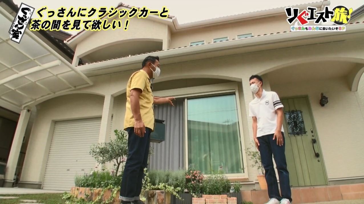 馬越さんの“リぐエスト”は「ぐっさんにクラシックカーと『ぐっさん家』をイメージした茶の間を見て欲しい」とのこと。「この外観から全く想像つかない世界があるということですよね?」と不思議がるぐっさん。この真新しいお家に本当に茶の間があるのでしょうか?