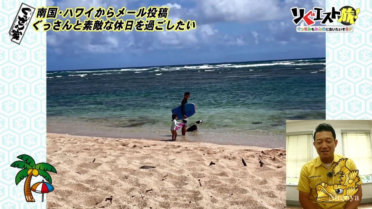 写真には千恵美さんの家族も登場し「うわ!なんかすごいハワイのビーチの理想の家族というか…最高じゃないですか!」と感激!海を越えたハッピーサプライズも大成功!ぐっさんのことが大好きな皆さんから、たくさんの愛と元気をもらったぐっさんでした。