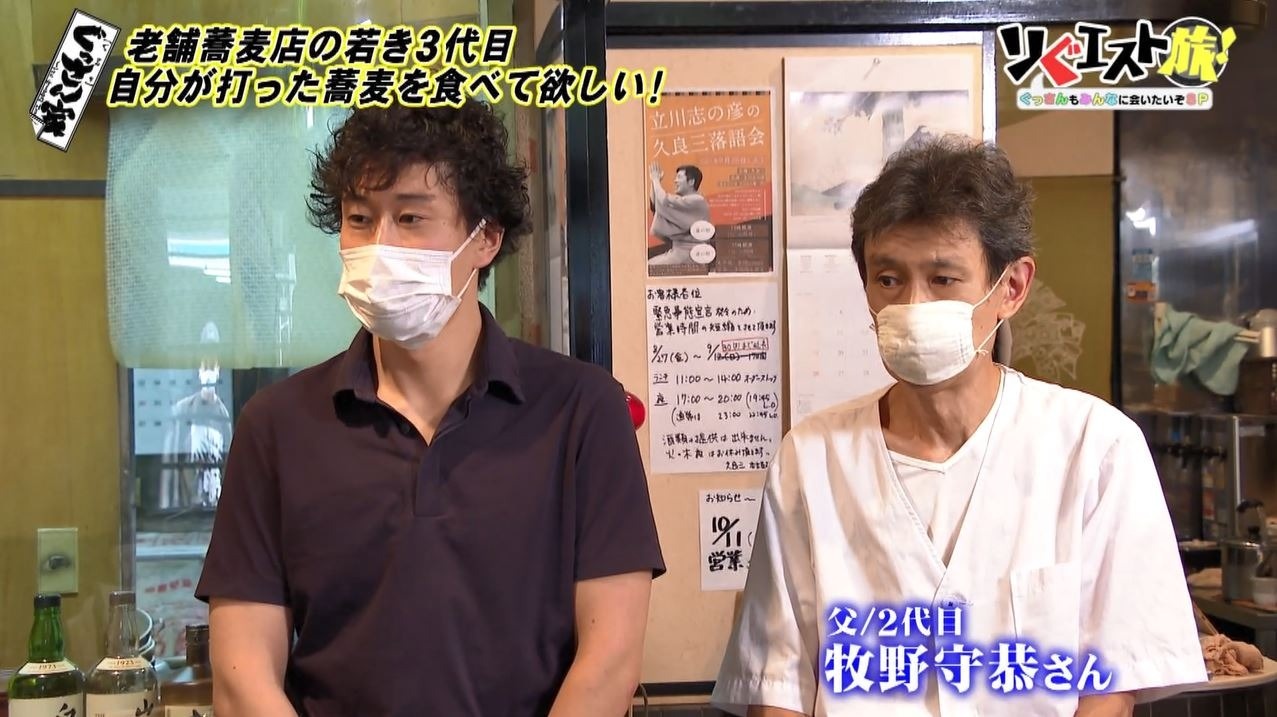 現役の職人である二代目のお父さんとは、ぶつかることもあるという牧野さん。そばに対する真剣な思いがあるからこそのエピソードにぐっさんも「現役やからお父さんも。でもテレビの前の皆さんにもおそば屋さんをちゃんとしっかり守っている若い世代の人がいるということをアピールできたかと思います」と素敵な親子にエールをおくり、お店を後にします。