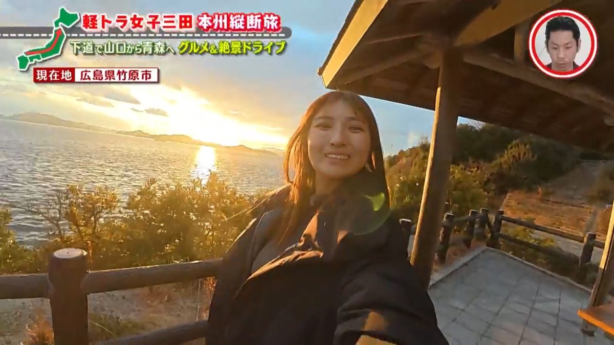 瀬戸内海に沈む夕日に感激!「どえらいきれいじゃろー」 グラビアアイドル・三田悠貴の軽トラ本州縦断の...