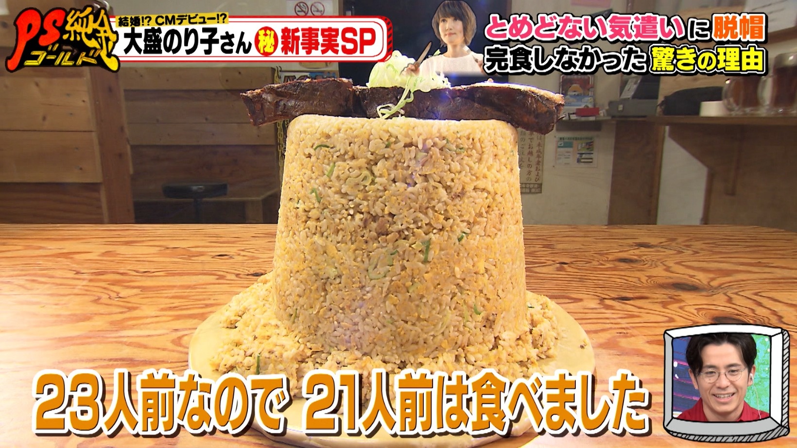そんなのり子さんでも完食できなかったグルメがあります。愛知県一宮市にある中華料理店『麺日和』のバケツチャーハン(7,887円)は、23人前の量がありますが、のり子さんの記録は21人前の量でストップ。