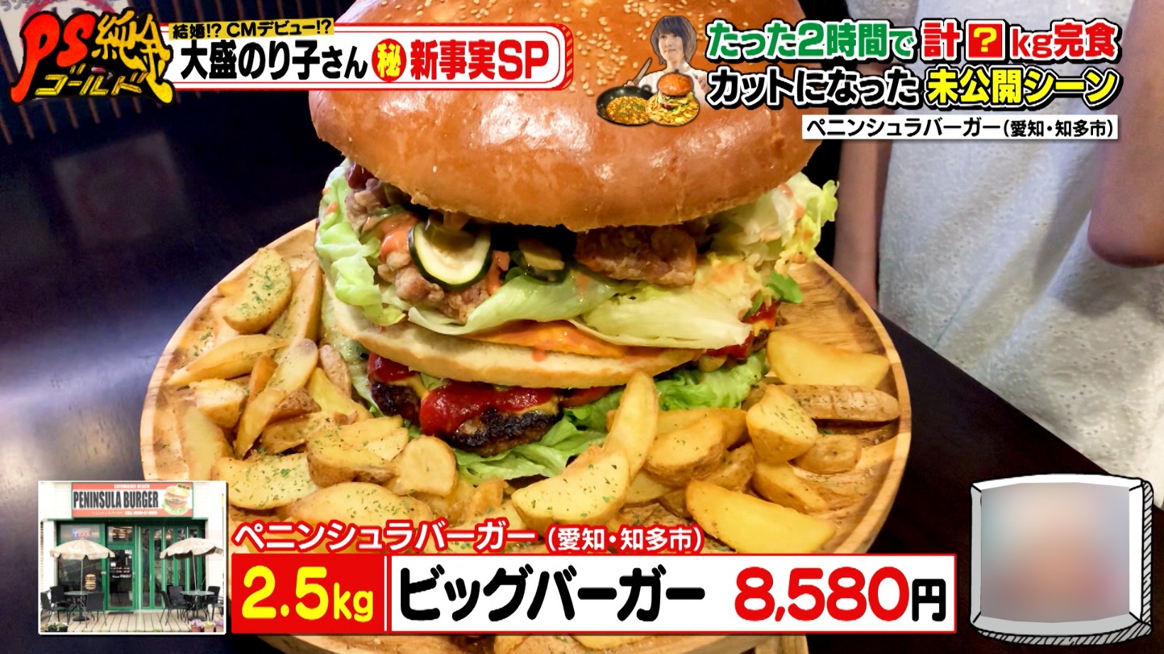 もちろんのり子さんらしく大食いシーンの撮影も!愛知県知多市にある『ペニンシュラバーガー』では、重量2.5kgもの「ビッグバーガー(8,580円)」をのり子さんは26分で完食し、撮影スタッフを驚愕させます。