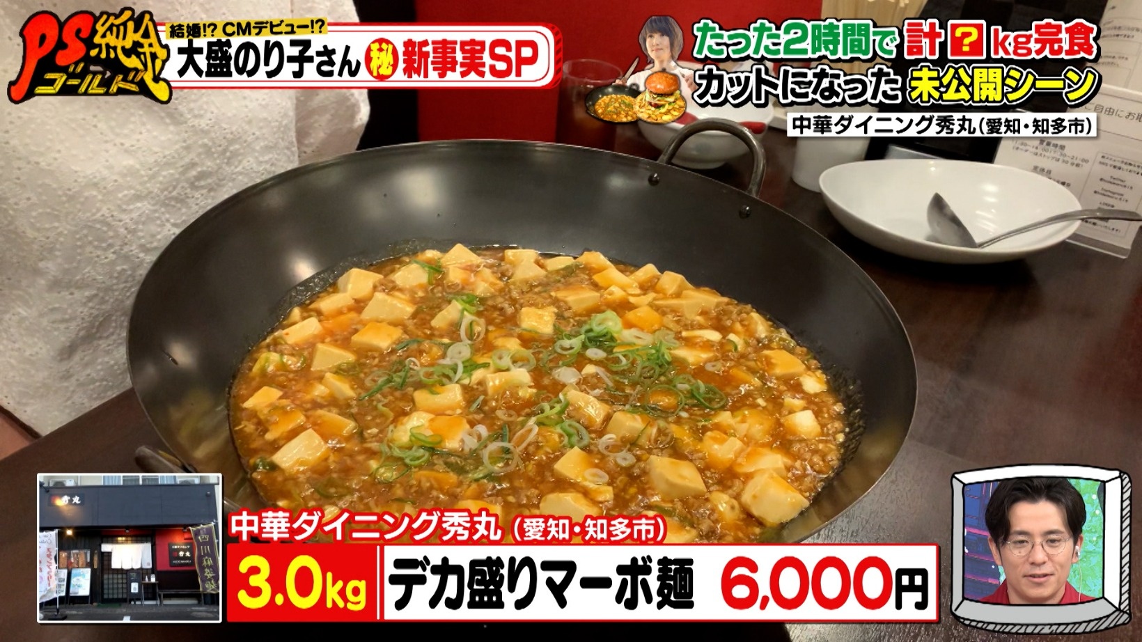 さらに知多市の『中華ダイニング秀丸』では、麺6玉にマーボー豆腐2kgをかけた「デカ盛りマーボ麺(6,000円)」にも挑戦したのり子さん。なんと2時間で約5kg分を胃の中におさめたことになります。これには藤森さんも、「これ食べたの?」と信じられないようです。