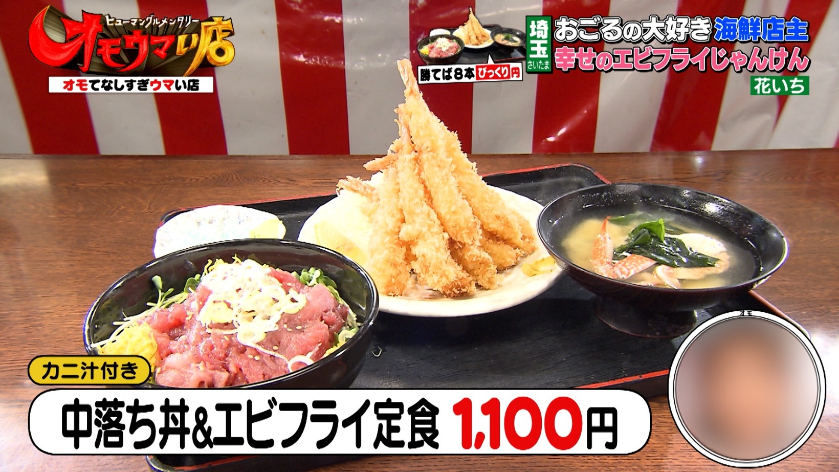 埼玉県さいたま市『花いち』店主がおごりたがる!?エビフライ&中落ちいくら丼定食1,100円