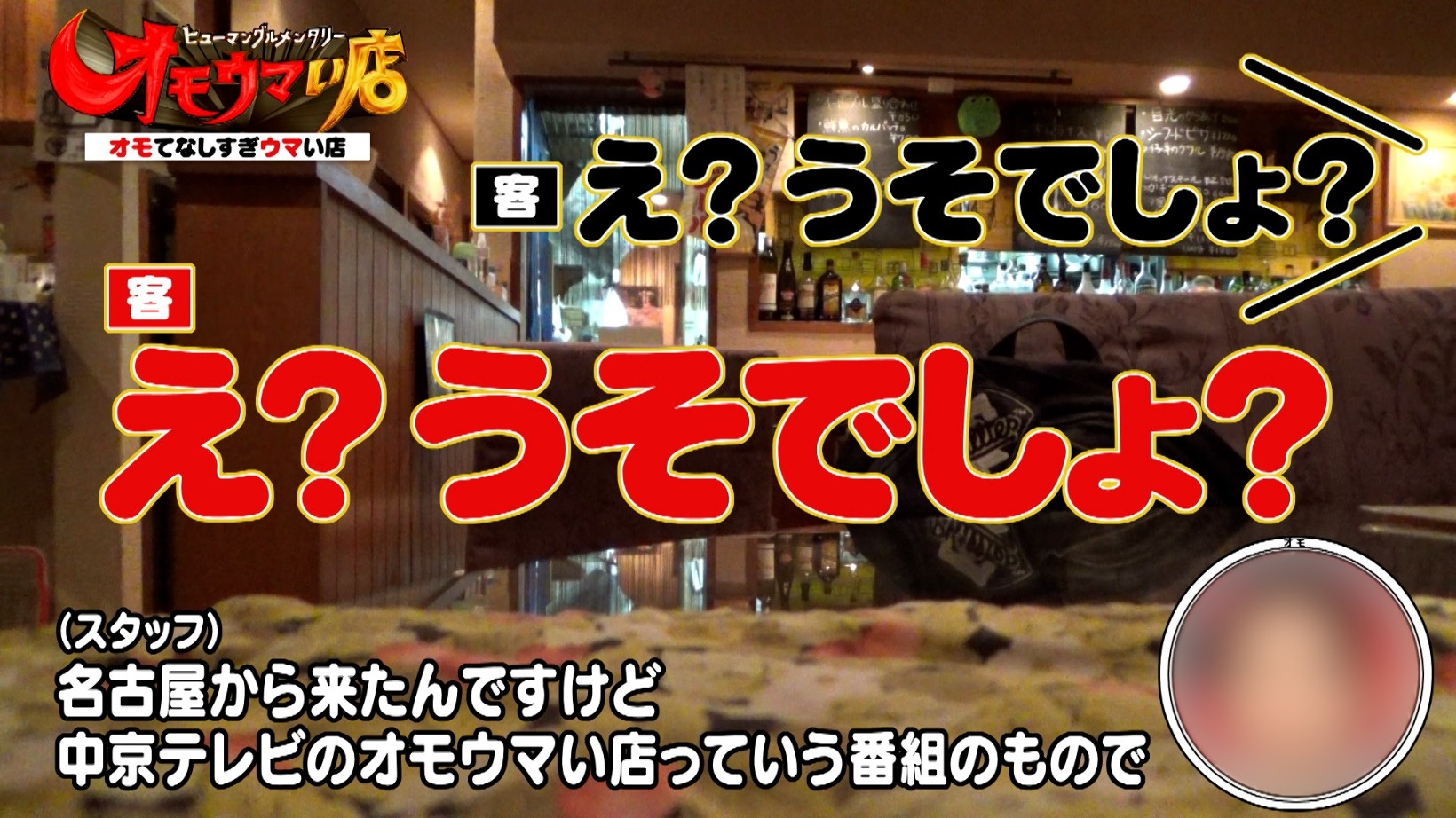 「中京テレビの『オモウマい店』っていう番組のもので…」と店主に名乗ると、たまたま居合わせたお客さん夫妻も「うそでしょ!?」と驚きます。どうやら番組を毎週観てくれているようです。