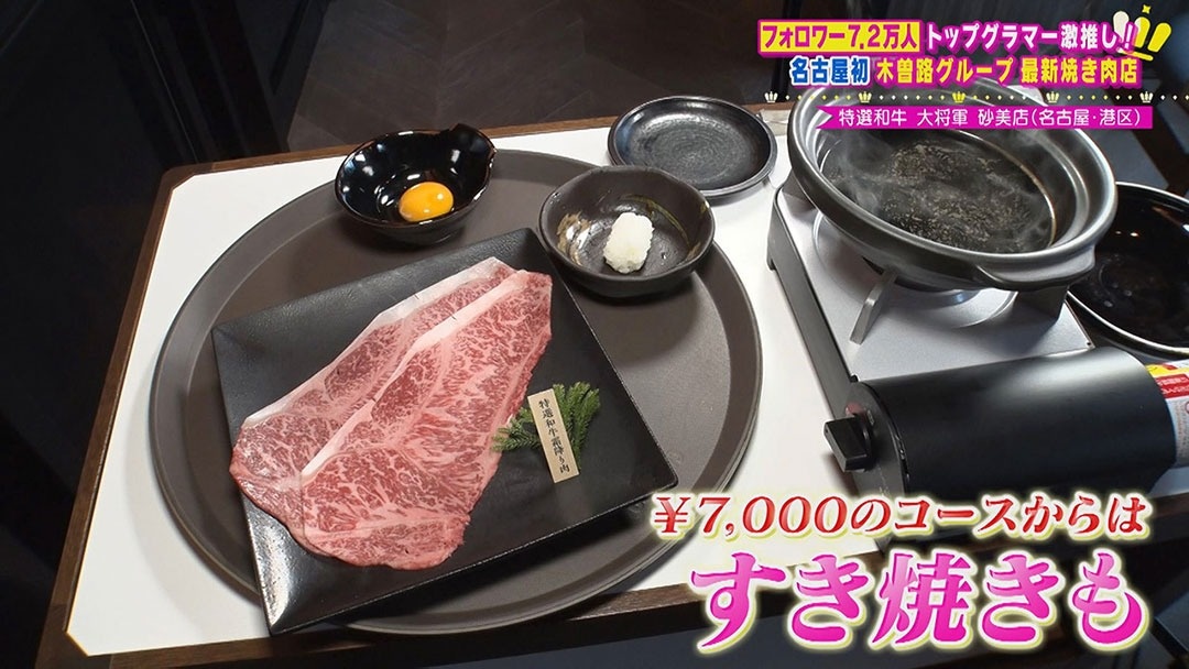 焼肉はもちろんのこと、7,000円のコースからは、厳選したこだわりの黒毛和牛が木曽路グループと同じ割り下を使用した「すき焼き」でいただけます。