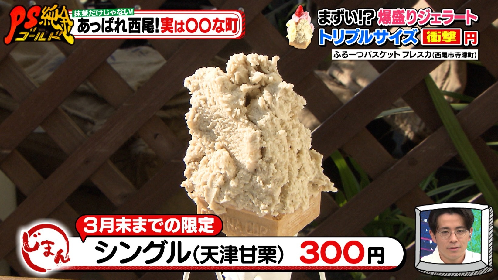 食後のデザートにおすすめなのは、以前放送した『手書き看板の店はウマい!?』特集で登場した『ふるーつバスケット フレスカ』。ここではさまざまなジェラートが楽しめます。
