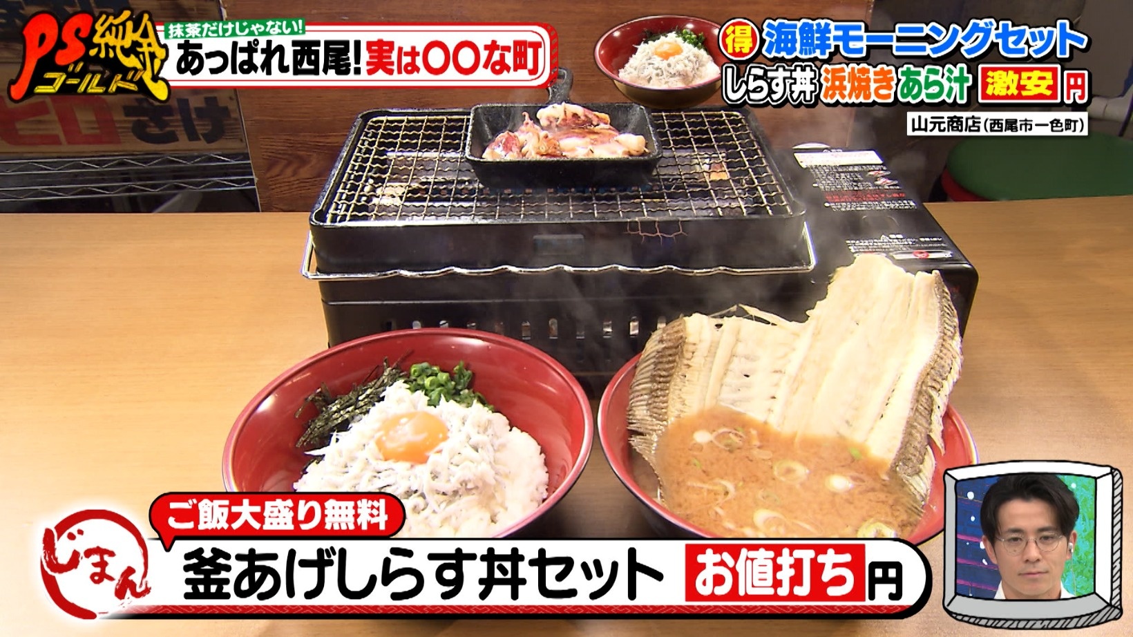 3品がまとめて楽しめる「釜揚げしらす丼セット」は1,000円という安さで、単品で頼むよりもリーズナブル! これには石橋さんも、「すげえな西尾市」と感心しきりなのでした。