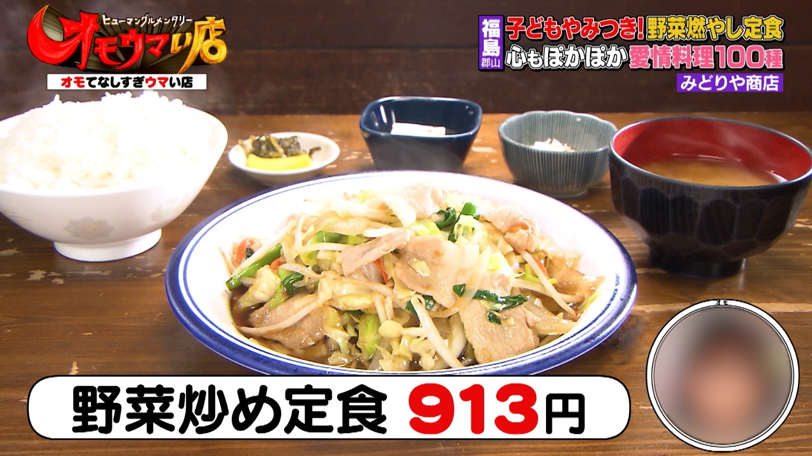福島県郡山市『みどりや商店』最強火力で作る!?野菜炒め定食913円