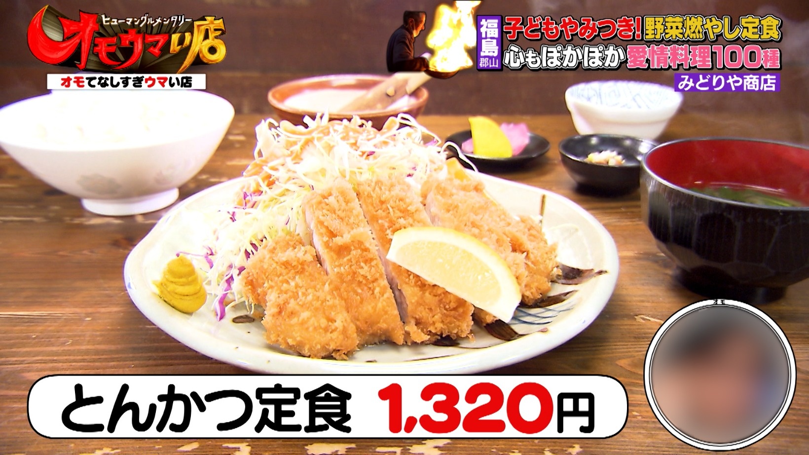 「とんかつ屋さん行くよりこっち行った方がいい」と評判のとんかつ定食(1,320円)。スタジオの藤井さんも、「途中下車だな」とお店に行く気満々のようです。