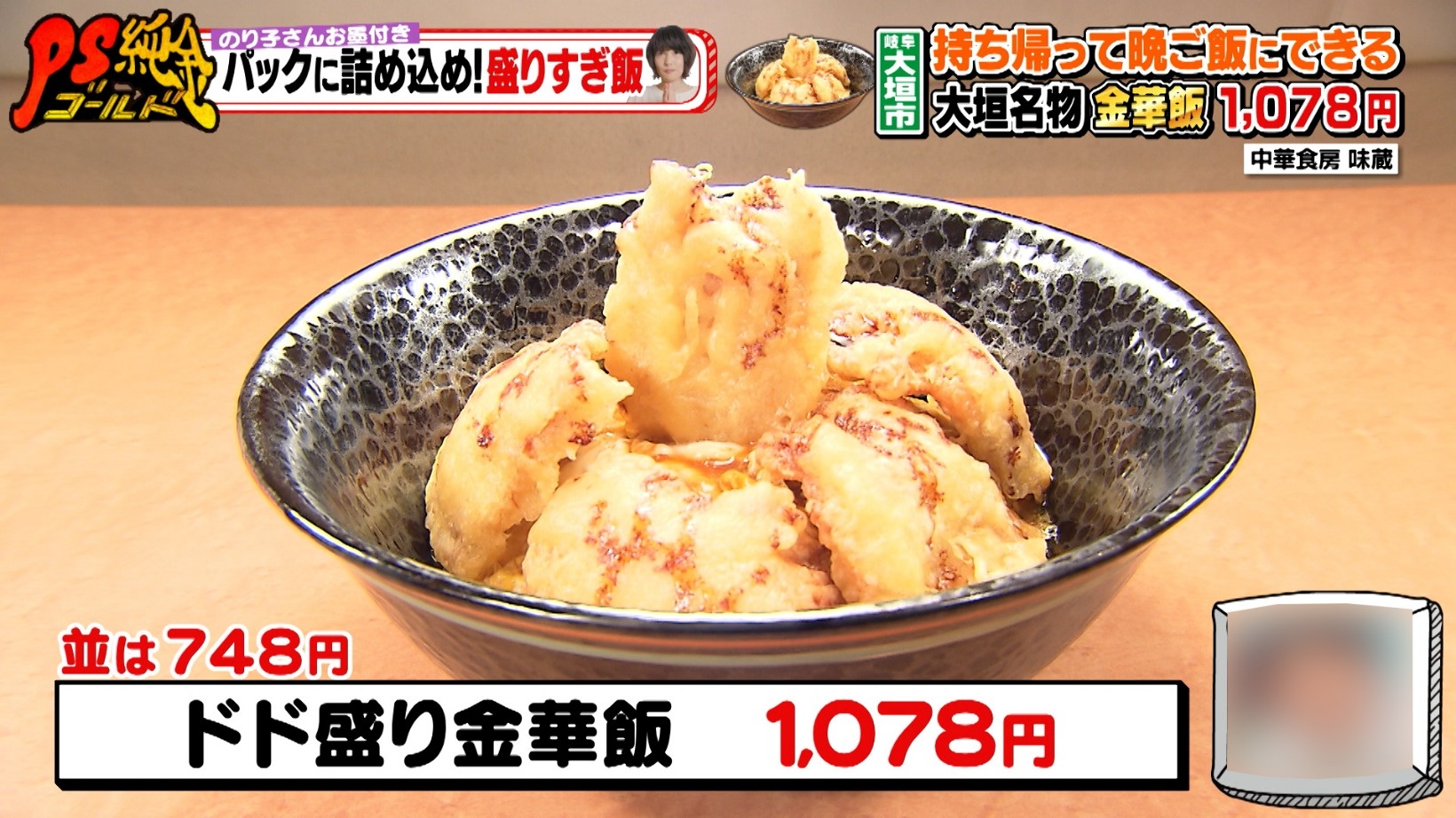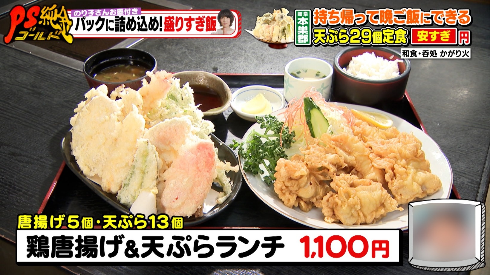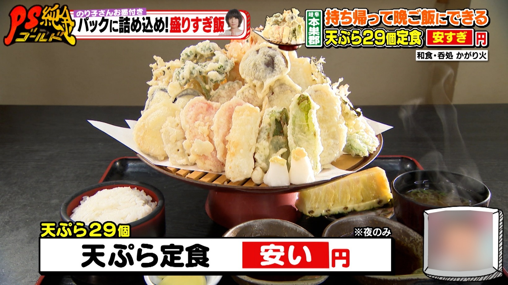 パックに詰めて持ち帰る「盛りすぎ飯」!29種の天ぷら定食&進化した大垣名物ドド盛り金華飯『PS純金(ゴールド)』