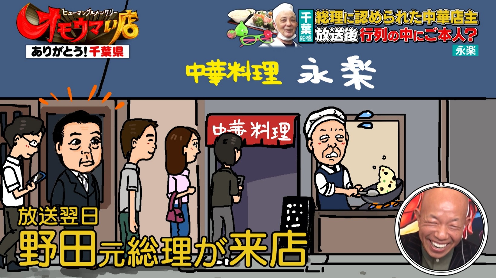 千葉県船橋市にある中華料理店『永楽』の店主は、元首相官邸の料理人。今でも野田佳彦元総理大臣から料理を頼まれることもあるのだとか。