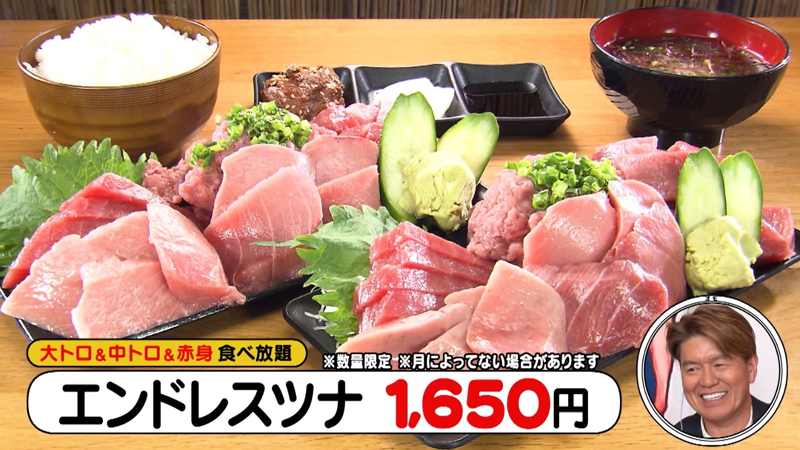 一切れの厚みが一般的な刺身の2~3枚分はありそうな「エンドレスツナ」は、1,650円という驚きの安さ!5,000~6,000円と予想したヒロミさんもあまりのお値打ち価格が信じられないようです。