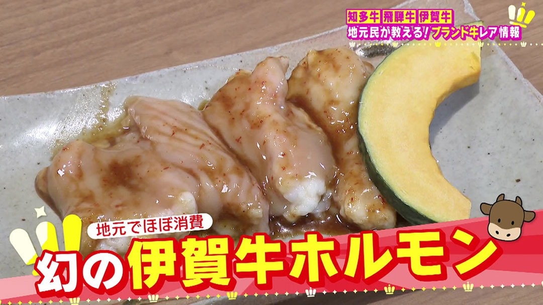 来年ブランド化60周年を迎える、赤身と脂身のバランスが良い三重の「伊賀牛(いがうし)」。他のブランド牛と比べて出荷頭数が少なく、全体の約8割が地元で消費されるそうで、中でも伊賀牛のホルモンは、あまりのおいしさに地元の方が食べてしまうので、市場に出回ることがほとんどないそう。