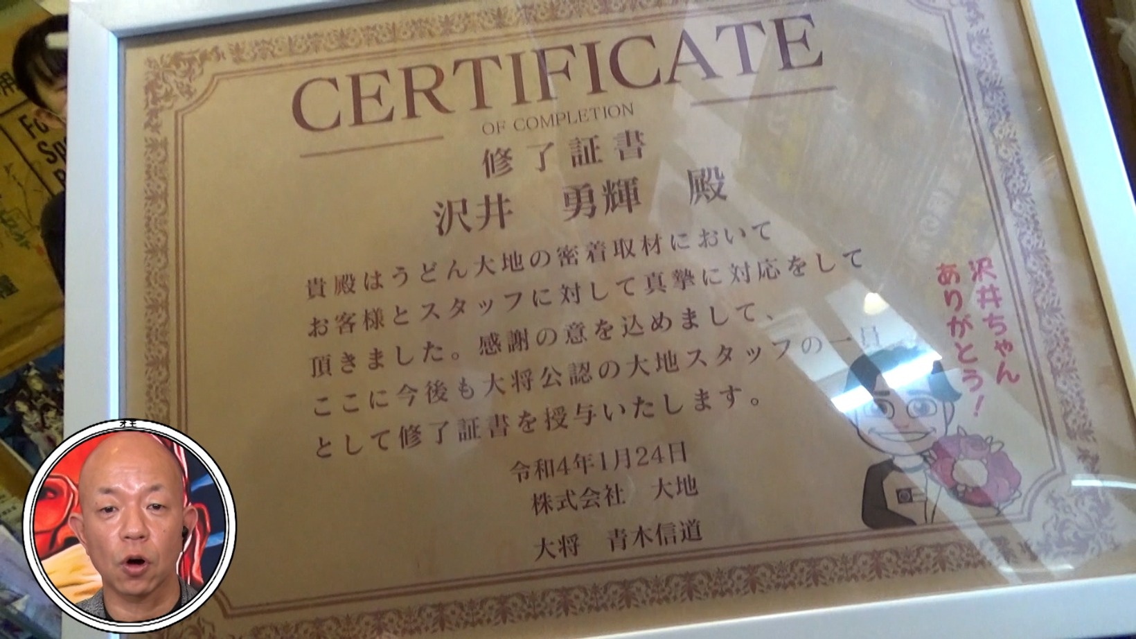 取材最終日、店主は「もう大地のスタッフだから」と番組スタッフに手作りの修了証書を渡してくれました。これにはスタジオのヒロミさんも笑みがこぼれます。