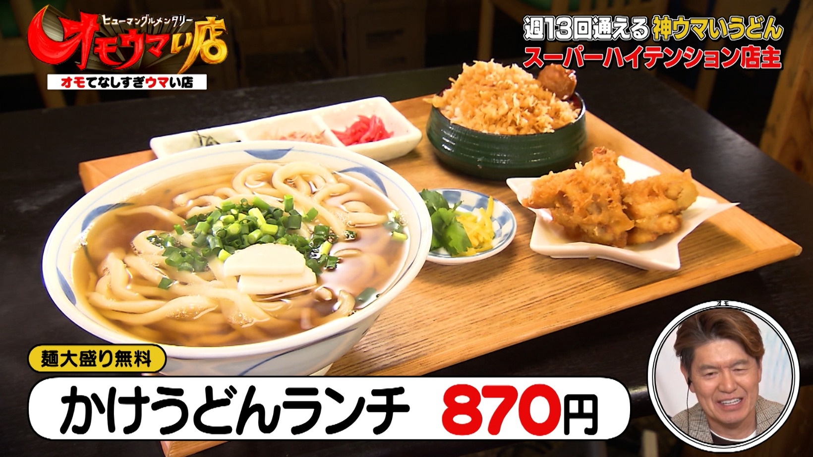 2022年3月8日の放送分では、ハイテンション店主が営む絶品うどんや、寿司とフレンチを提供するめずらしい回転寿司が登場。人気メニューのほか、個性豊かな店主についても紹介します。
