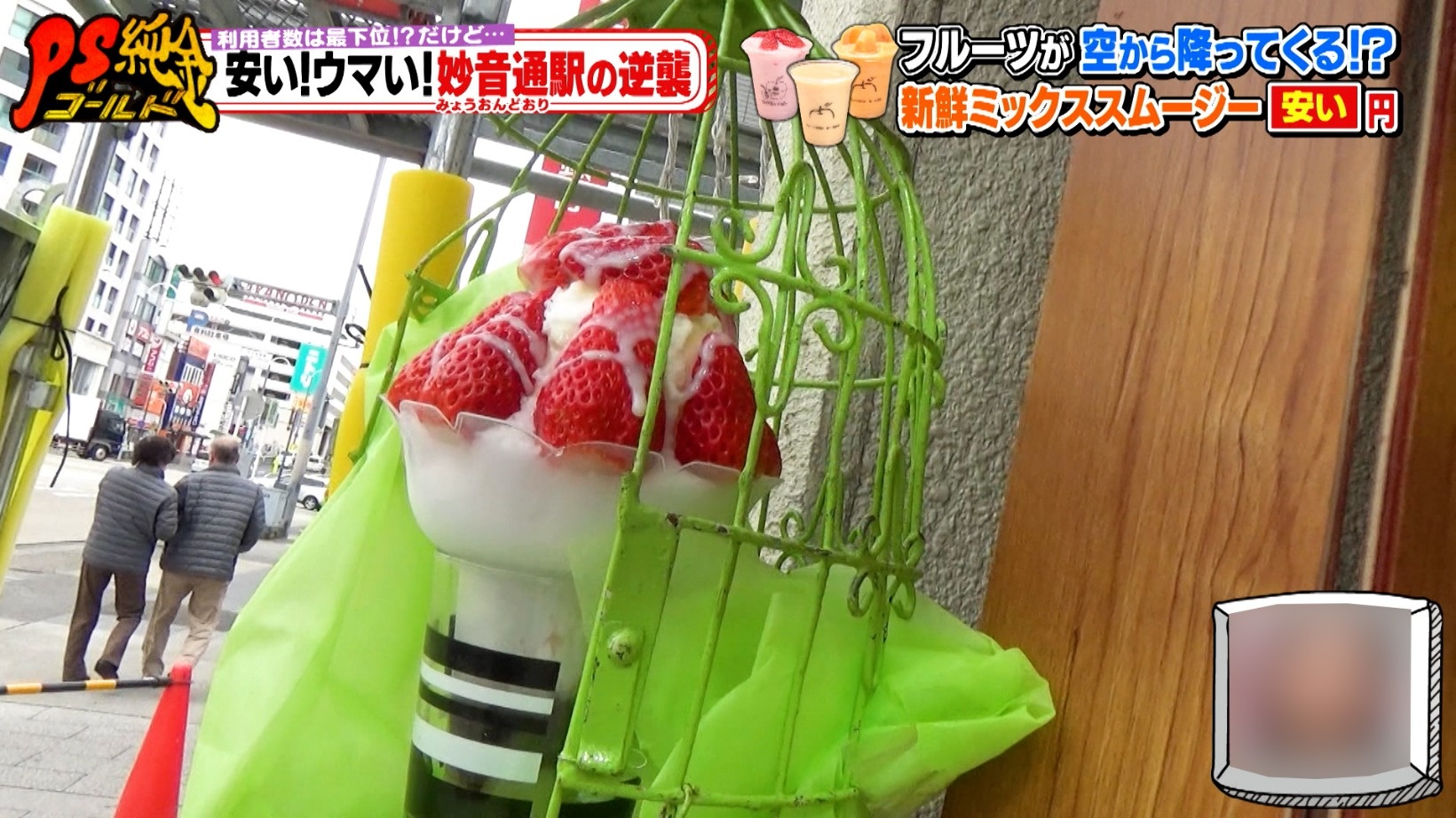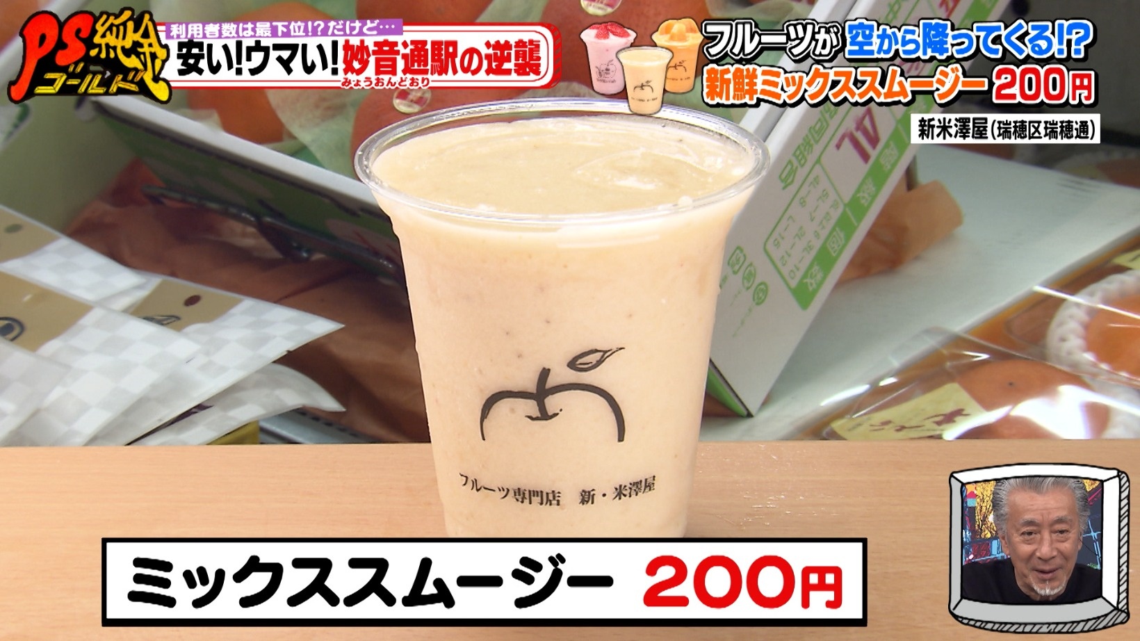店の定番メニュー「ミックススムージー(200円)」は、バナナをメインに旬のフルーツを4種類ミックス。時期によってはシャインマスカットなどの高級フルーツが入ることもあるのだとか!これには高田さんも、「今日の(放送)見たら皆行くね!」と太鼓判を押すのでした。