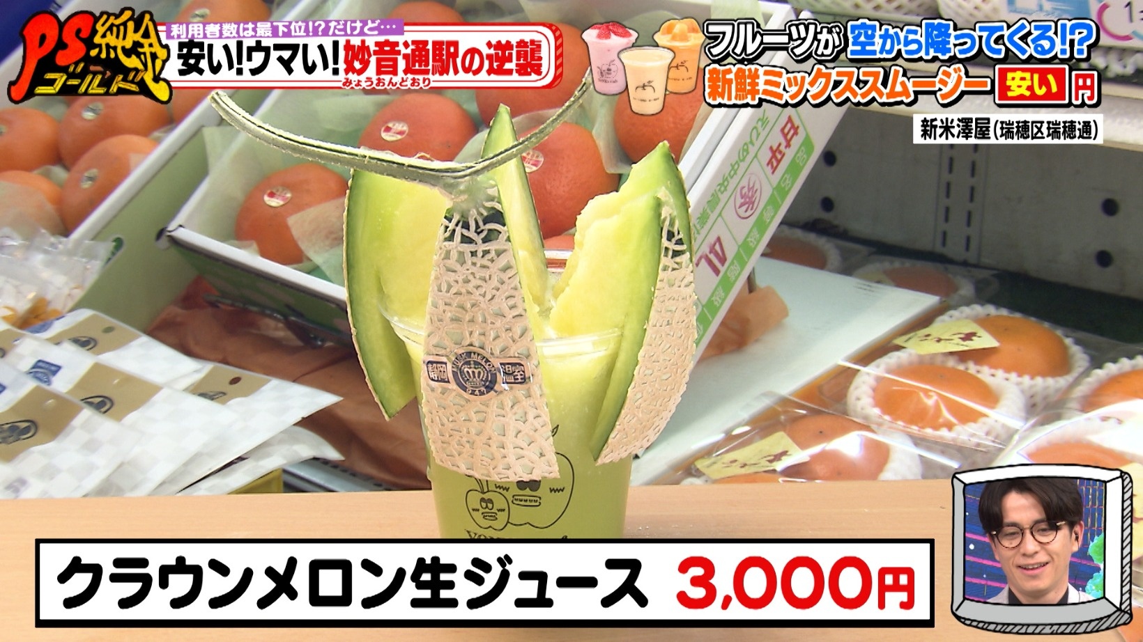 なかには「クラウンメロン生ジュース(3,000円)」という贅沢な一品も!スタジオの藤森さんも、「飲みたい!」とそのインパクトに惹かれたようです。
