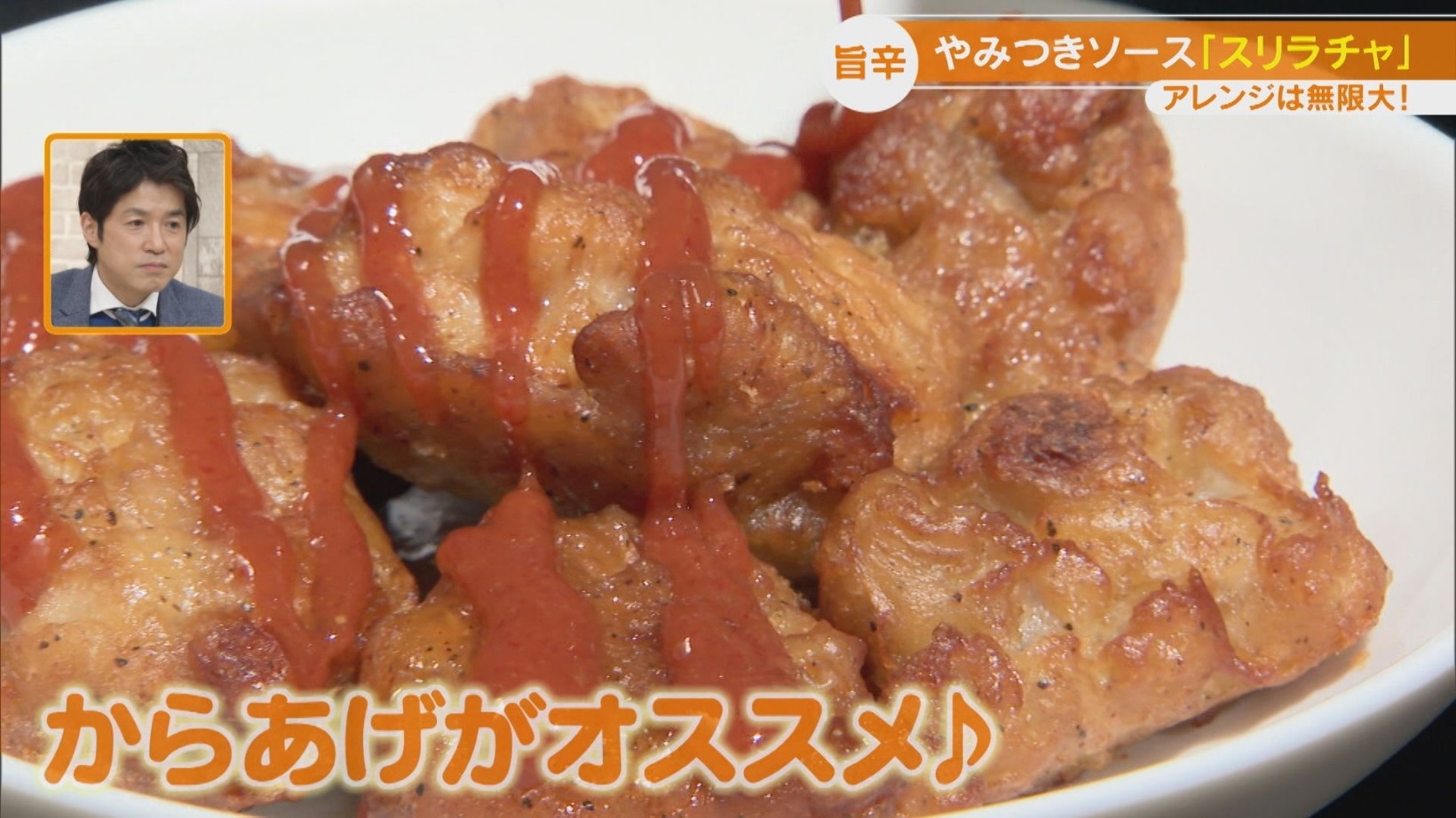 『スリラチャの赤備え』は、かけるだけでなんでも旨辛スパイシーになる万能調味料。どんな料理にも合いますが、オススメはからあげ。ソースの旨みがダイレクトに味わえます。また、他の調味料と組み合わせるのもオススメ。