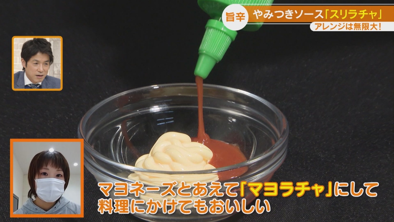 ケチャップと『スリラチャの赤備え』を合わせた「ケチャラチャ」はポテトやフランクフルトに、マヨネーズと『スリラチャの赤備え』を合わせた「マヨラチャ」はお好み焼きによく合います。食欲をそそるだけでなく、マイルドな辛さになって食べやすくなります。