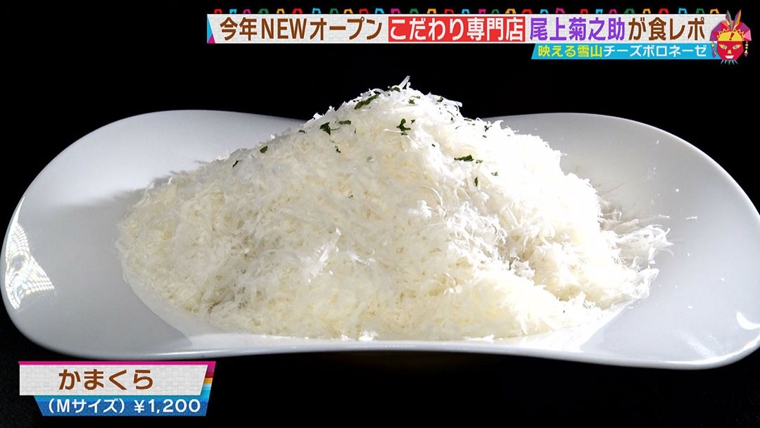 さらに、写真映え抜群と人気なのが『かまくら(Mサイズ)』(1,200円)。特製の削り器でふわっふわに削られたチーズが、ボロネーゼに山のようにふりかけられています。濃厚な味わいで食べ応えがありますよ。