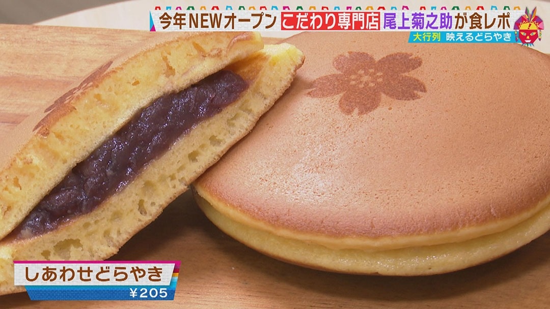 こだわりの生地には「とろろ」が入っており、ふわっふわ、もっちもちの唯一無二の食感になるのだとか。1番人気は、定番の『しあわせどらやき』(205円)。手土産にも最適の商品です。カステラのような生地に、やさしい甘さのあんこがたまらない逸品です。