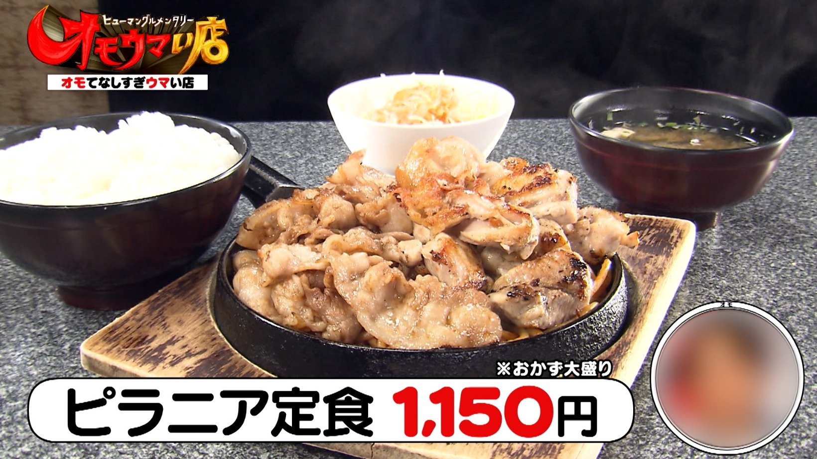 鶏ももの塩焼き、豚のしょうが焼きの両方楽しめる「ピラニア定食(1,150円)」も人気メニューのひとつ。店内でおいしそうに食べるお客さんに、水卜アナも「幸せそう…」とつぶやきます。