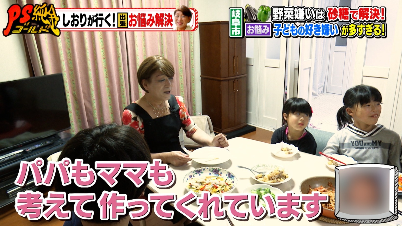 しかし、いきなりお説教モードに入るしおりさん。塩谷ファミリーでは子どもたちの好き嫌いにあわせて3人バラバラのメニューを作っていると聞き、「お子さんが好き嫌いを作ったんじゃないの。(好き嫌いに)あわせて作るパパとママが問題なの。優しすぎる」と話すしおりさん。