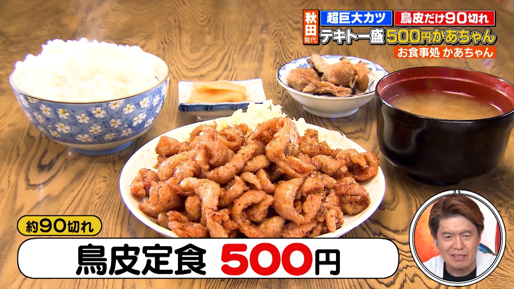 「鳥皮定食(500円)」が登場すると、スタジオメンバーは「皮だけ?」「珍しいですね!」とツッコミを入れます。